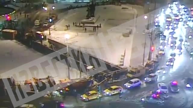 Камера сняла момент обрушения лесов у метро "Улица 1905 года", где пострадали 6 человек