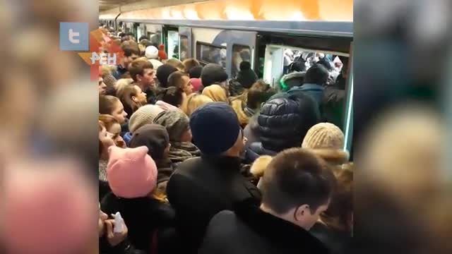 В Сети появилось видео давки на станциях фиолетовой ветки из-за застрявшего в тоннеле поезда