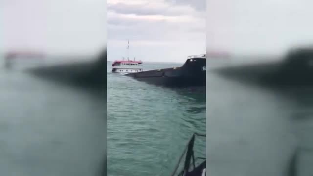 МЧС России показало на видео процесс буксировки сухогруза "Берг", потерпевшего крушение накануне у берегов Феодосии. Корабль успешно выведен на мель.