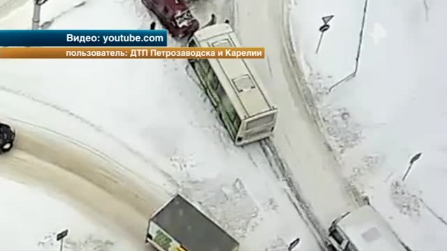Видео: в Петрозаводске гололед спровоцировал цепочку ДТП