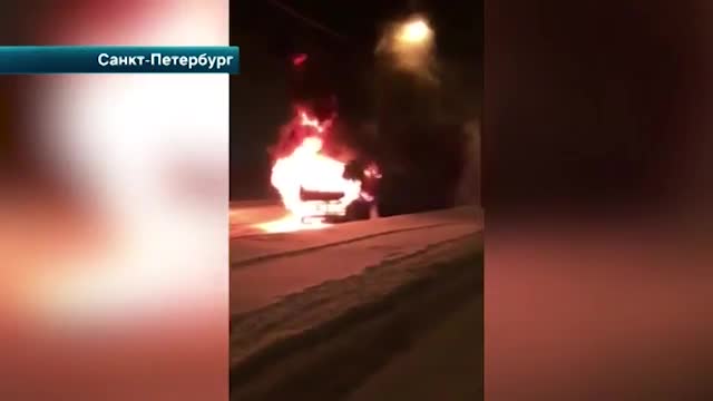 Видео: автобус с пассажирами загорелся в Санкт-Петербурге