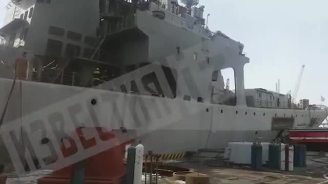 Видео: пожарные работают на корабле "Маршал Шапошников", где произошло возгорание