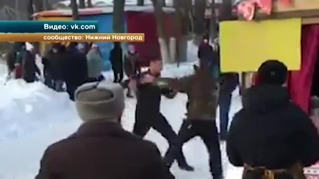 В Нижнем Новгороде двое подвыпивших приятелей завершили масленичные гуляния традиционным кулачным боем. Действие разворачивается в местном парке культуры и отдыха.