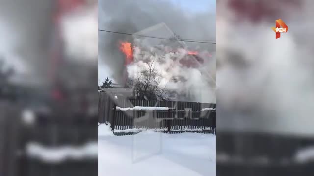 РЕН ТВ публикует кадры из подмосковного Чехова, где мужчина поджег дом и покончил с собой
