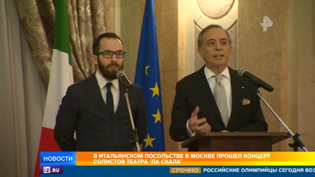 Легендарный миланский "Ла Скала" переехал в Россию. В итальянском посольстве в Москве самые знаменитые оперные арии исполнили солисты театра.