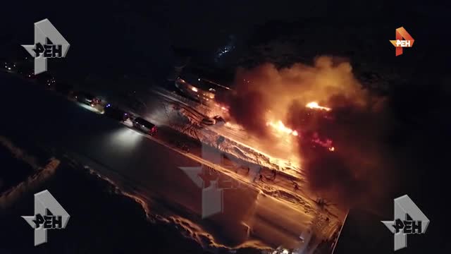 На кадрах записи видно, что огнем охвачены все три палубы судна.