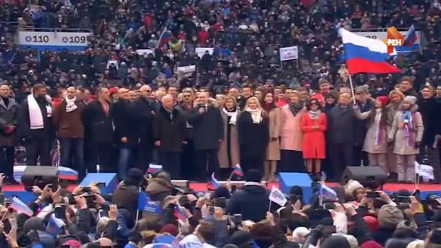 Президент России выступил перед собравшимися и спел гимн страны "За сильную Россию!".