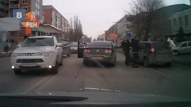 В Саратове после небольшого столкновения автомобилей произошла драка между водителями.