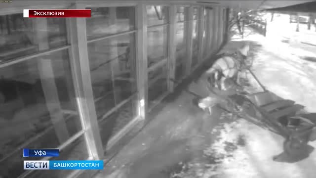 Кадры появились в распоряжении ГТРК Башкортостан. На них видно, как животное проносится мимо планетария, а пассажирка, которая вылетела с повозки, ударяется о стену здания. После этого лошадь идет на второй круг и таранит стену.