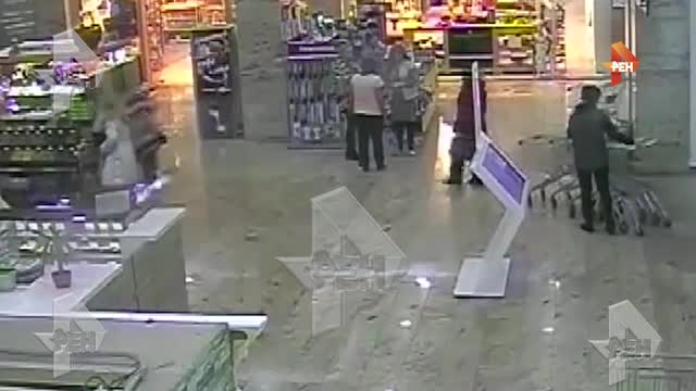 В распоряжении РЕН ТВ оказалось видео с камер наблюдения, установленных в ТЦ "Райкин Плаза".