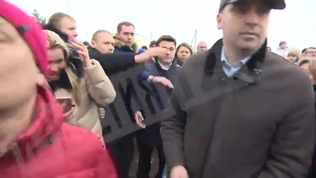 Глава Волоколамского района Евгений Гаврилов оказался зажат в центре толпы. Люди угрожали ему, его стыдили, теснили, толкали, пытались сбить с ног. В какой-то момент кто-то из толпы и вовсе ударил его по лицу.