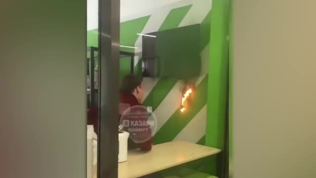 В Сеть выложили видео, на котором учащийся Казанского архитектурно-строительного университета пытается потушить загоревшуюся в университетской столовой проводку.