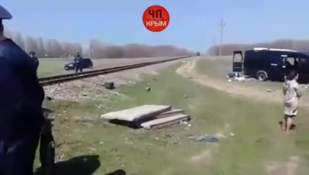 РЕН ТВ публикует кадры с места, где электричка протаранила микроавтобус в Крыму. ДТП произошло на нерегулируемом железнодорожном переезде в городе Армянск.