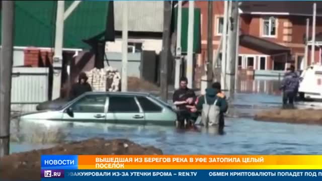 Из-за потопа жители Уфы вынуждены передвигаться по городу на лодках. Еще несколько часов назад по дорогам поселка Зубово можно было пройти пешком, а сейчас между домами передвигаются только лодки и бронетранспортер.