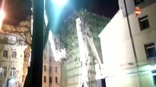 Видео: спасатели готовятся к демонтажу дома, обрушившегося в центре Москвы