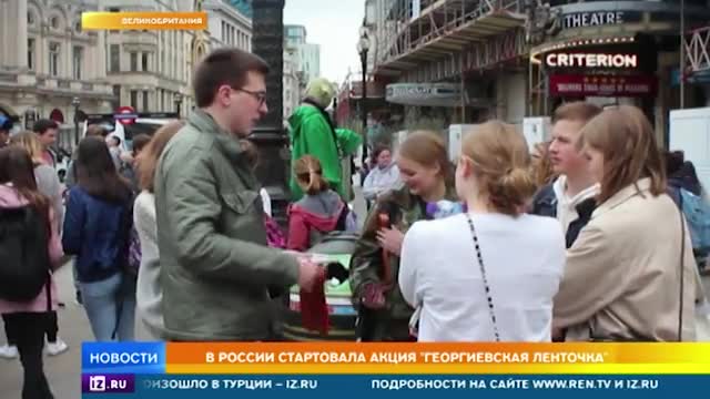 Например, на улицах Лондона георгиевские ленточки раздают российские студенты, которые учатся в британских колледжах и университетах.