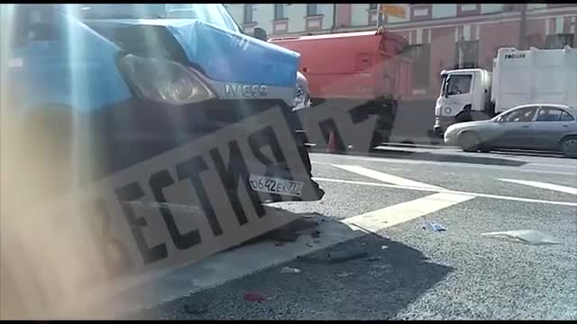 Видео с места столкновения двух микроавтобусов в центре Москвы