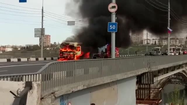 Видео: маршрутка загорелась на мосту в Нижнем Новгороде