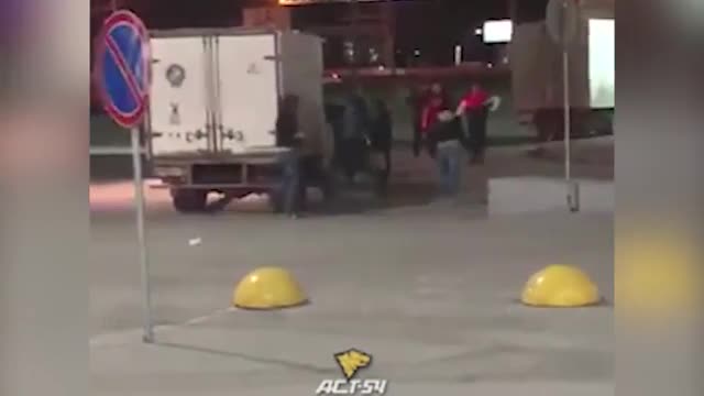 На кадрах видно, что хулиганы не жалеют оппонентов и бьют их наотмашь, а в один из моментов толпу пытается протаранить машина.