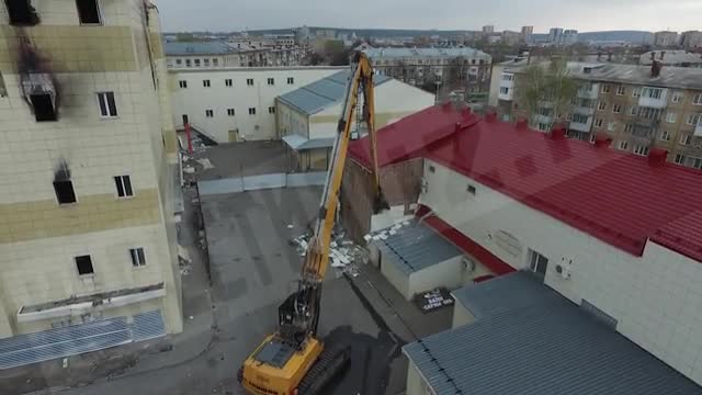 Сегодня в Кемерове начался демонтаж сгоревшего торгового центра "Зимняя вишня". Рабочие разбирают вспомогательные здания, которые находятся в аварийном состоянии, поэтому действовать нужно крайне аккуратно.