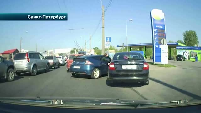 В Петербурге очень вспыльчивые водители бросились выяснять отношения после того, как не поделили дорогу.