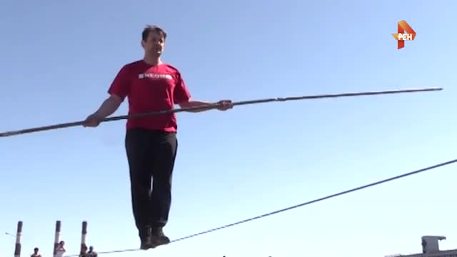 Видео: питерский экстремал готовится пересечь разведенный Дворцовый мост по канату