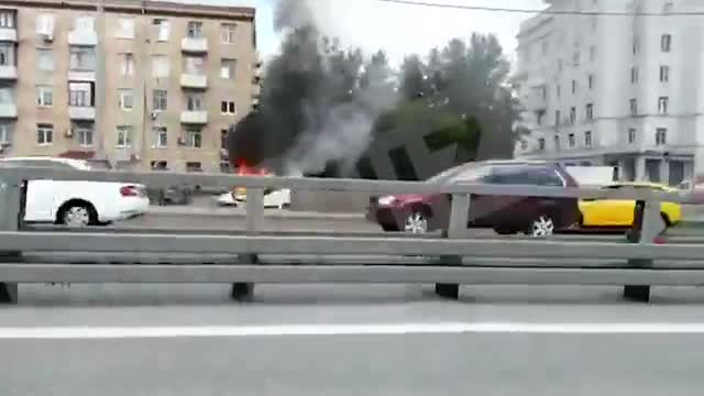 Видео: "Газель" загорелась посреди Рязанского проспекта в Москве