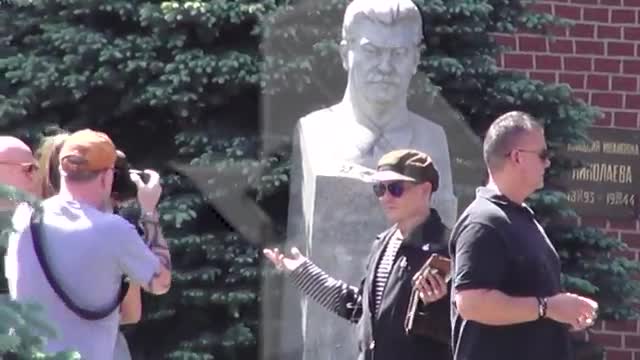 На кадрах видно, как голливудская звезда фотографируется с бюстом Сталина.