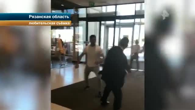 В Рязани дебоширы устроили поединок с охранниками торгового центра. Молодой человек будто бы намеренно провоцировал людей в деловых костюмах. То убегал от них, то вновь бросался в атаку.