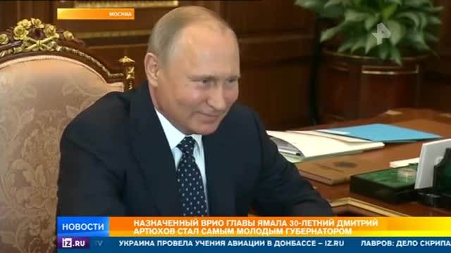 Александр Моор – мэр Тюмени – в кабинете Владимира Путина получает новое назначение – временно исполняющего обязанности губернатора Тюменской области. Предыдущий глава региона – Владимир Якушев – две недели назад получил портфель министра строительства и ЖКХ. Здесь Моор – в кабинете и при галстуке. А вот видео семимесячной давности. Он среди 74 чиновников со всей России принимает участие в тренинге будущих губернаторов. Прыгает с семиметровой скалы в воду. За кадром остались прыжки с парашютом, обучение стрельбе. Судя по всему, нормативы Моор сдал на отлично.