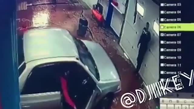 В Сети появилось видео, снятое камерой наблюдения на автомойке в Якутске. На кадрах видно, как автомобиль наезжает прямо на сотрудника мойки, мужчина падает на капот машины. В таком положении его провозят несколько метров.