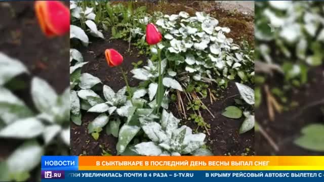 В Сыктывкаре за день до наступления календарного лета началась зима. Сегодня город засыпало снегом, а температура резко опустилась до нуля. Инеем покрылись цветы и уже позеленевшие деревья. И хуже всего сейчас автомобилистам: по майской гололедице на лысой резине — как на катке.