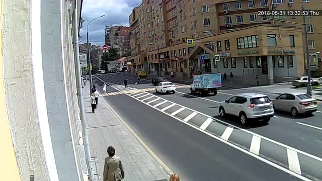 Камера наблюдения сняла, как автоледи на иномарке снесла пешехода в центре Москвы