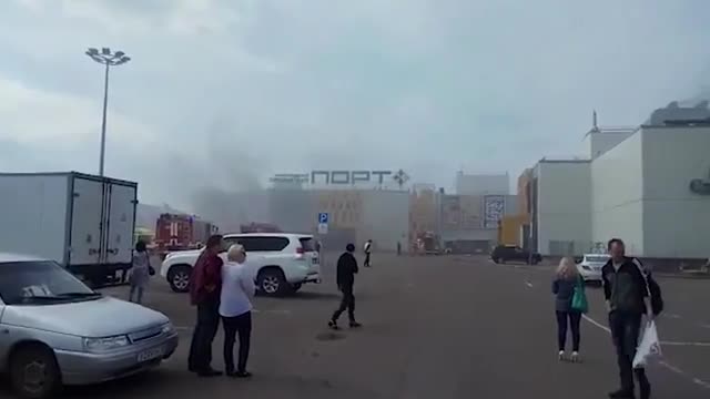 Видео с места пожара в торговом центре в Казани