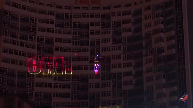 "Молодежка ОНФ" решила поздравить жителей Челябинска и Сочи с Днем России весьма необычным способом. На одном из самых высоких зданий в каждом из этих городов загорелось огромное слово "Россия".