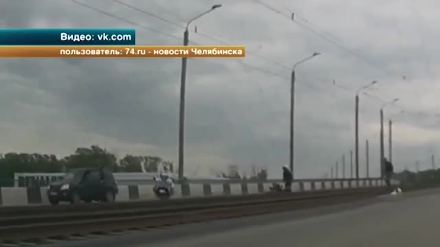В Челябинске полицейский избил байкера, который стал участником ДТП. Молодой человек попытался скрыться от инспекторов, не справился с управлением и упал.