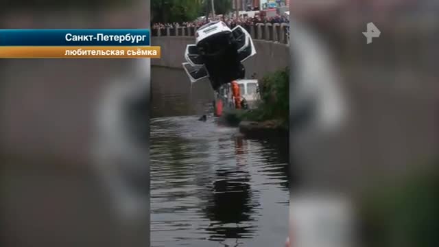 В Петербурге спасатели выловили из реки внедорожник. На место пришлось вызывать даже водолазов.