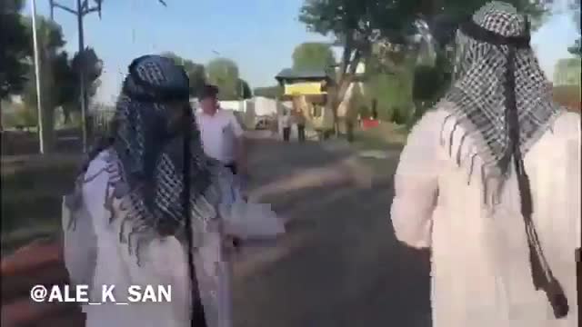 На кадрах видеозаписи видно, как любители розыгрышей в кандурах и платках гутра говорят с местными жителями на английском языке.