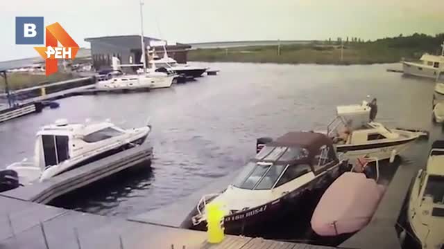 Катер пытался повернуть, но задел мотор другого транспорта, после чего уплыл подальше.