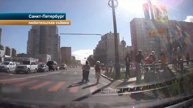 В Петербурге дорожный знак упал на голову пешеходу.