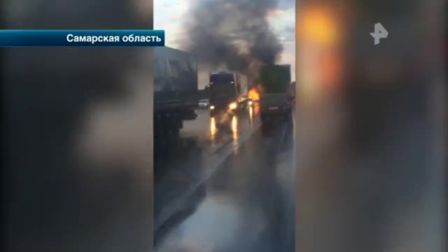 Кадры жуткой аварии в Самарской области, где два человека буквально сгорели заживо. На трассе полыхали два автомобиля: BMW и "Газель".