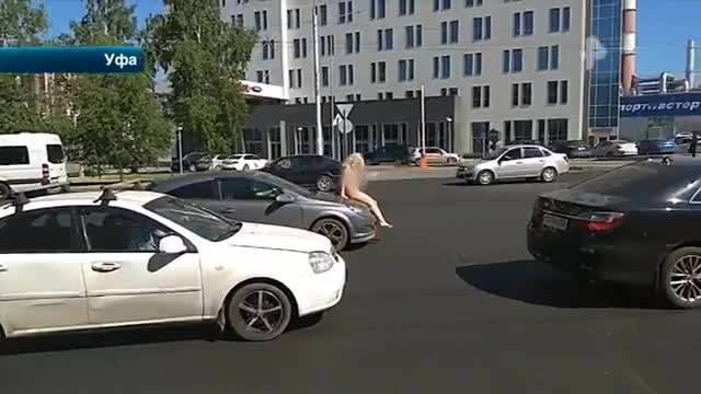 Водители из Уфы на некоторое время почувствовали себя посетителями нудистского пляжа. А все потому, что абсолютно голая девушка расположилась на капоте авто, словно это лежак.