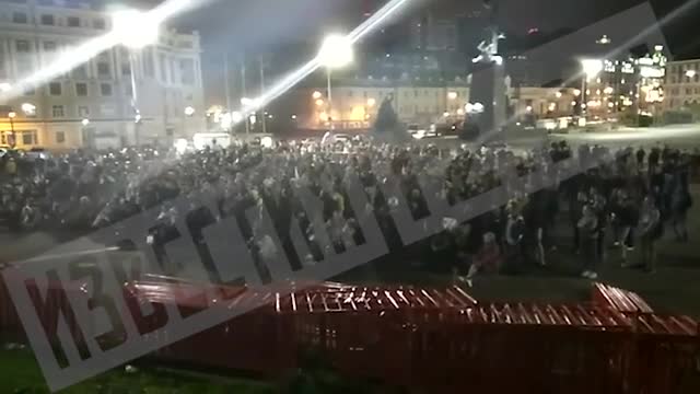 Жители Владивостока болеют за Россию, борющуюся с Хорватией за право выйти в полуфинал ЧМ-2018. Городская площадь заполнена, несмотря на то, что там сейчас полпятого утра.