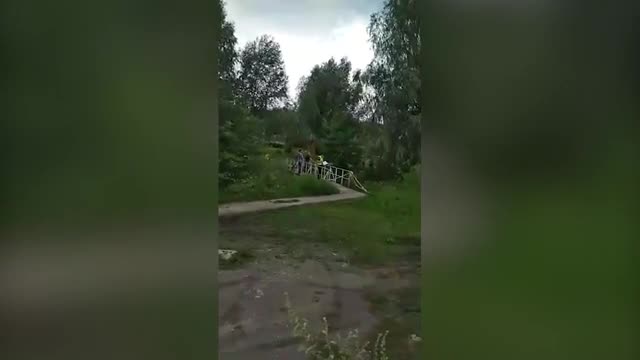 По словам очевидцев, во время погони нарушитель на мопеде проехал по пешеходному мосту через реку, а полицейский автомобиль, проехавший за ним, упал в воду.