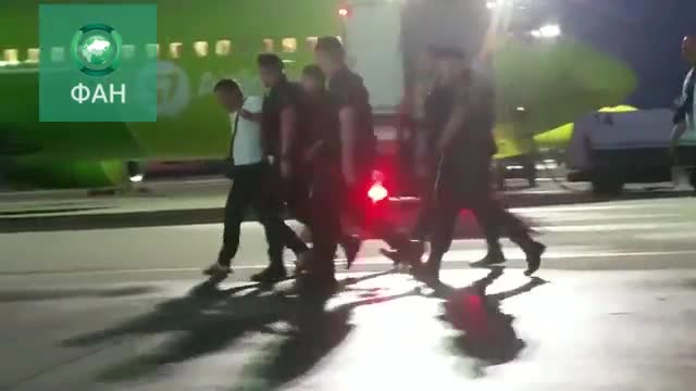 Очевидцы сняли на видео, как неадекватный пассажир самолета устроил потасовку с работниками аэропорта Домодедово.
