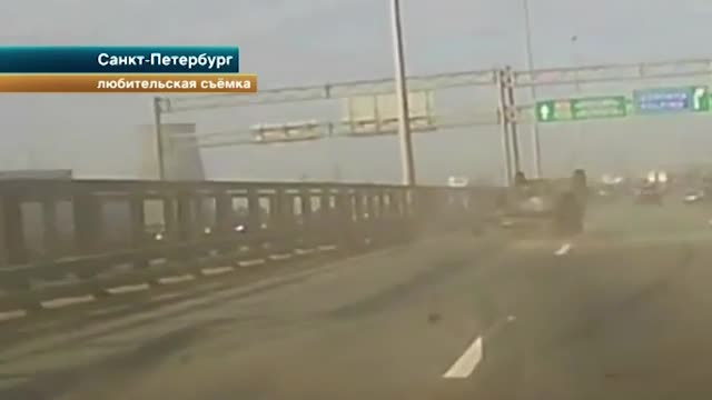 Лихач на БМВ перестраивается из ряда в ряд, и вот уже его автомобиль уходит в занос. Водитель пытается справиться с управлением, резко выкручивает руль, но выровнять машину не удается, она летит словно неуправляемый снаряд и таранит соседние авто, после чего врезается в ограждение и делает несколько оборотов вокруг своей оси — на крыше.