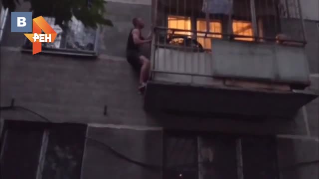 Не дожидаясь спасателей, прохожий полез на второй этаж. Забираться по дому было тяжело: по его признанию, края балкона и решетки обваливались.