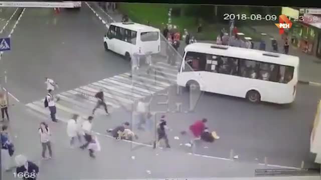 Камера сняла наезд автобуса на пешеходов в Мытищах
