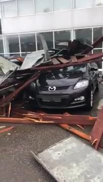Видео: Сорванная ветром крыша перебила десятки дорогих иномарок