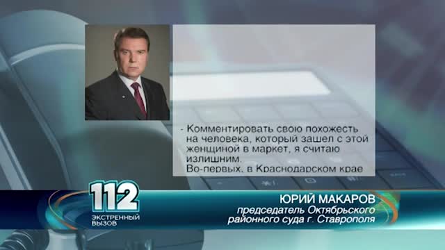 "Комментировать свою похожесть на человека, который зашел с этой женщиной в маркет, я считаю излишним. Во-первых, в Краснодарском крае я в этом году вообще не был. Во-вторых, моя машина имеет конструктивные отличия от той, которая представлена", —- заявил председатель Октябрьского районного суда Ставрополя Юрий Макаров.